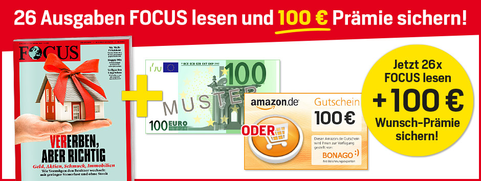 • Ein halbes Jahr (26 Ausgaben) FOCUS Print (inkl. FOCUS+) für nur 143,00 € lesen