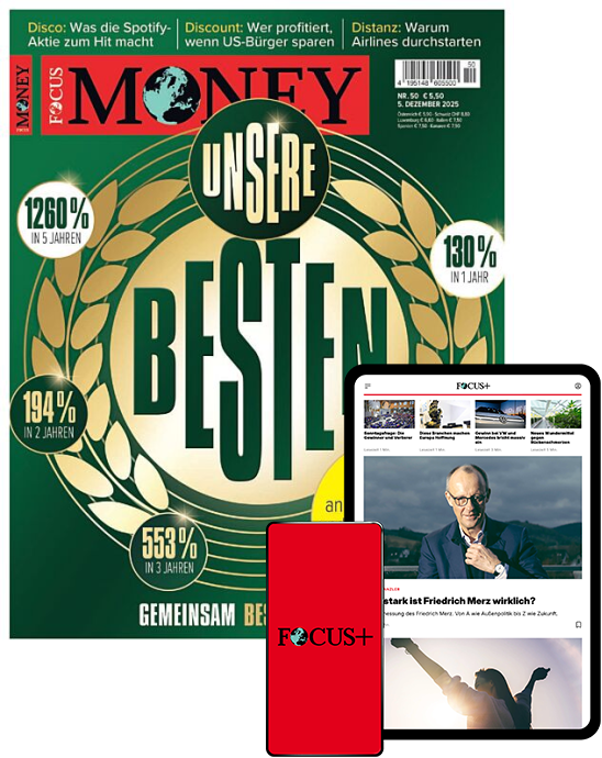 Das Finanzmagazin FOCUS MONEY analysiert seit über 25 Jahren mit Tiefgang die Märkte und liefert Ihnen fundierte Analysen sowie konkrete Empfehlungen, die sich für Sie auszahlen. Wir erklären Ihnen, wie Sie Ihr Vermögen vermehren, welche Strategien zur jeweils aktuellen Lage am vielversprechendsten sind und welche Aktien in Ihrem Depot zu favorisieren sind.