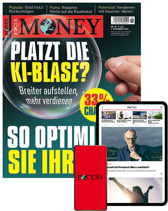 Das Finanzmagazin FOCUS MONEY analysiert seit über 25 Jahren mit Tiefgang die Märkte und liefert Ihnen fundierte Analysen sowie konkrete Empfehlungen, die sich für Sie auszahlen. Wir erklären Ihnen, wie Sie Ihr Vermögen vermehren, welche Strategien zur jeweils aktuellen Lage am vielversprechendsten sind und welche Aktien in Ihrem Depot zu favorisieren sind.